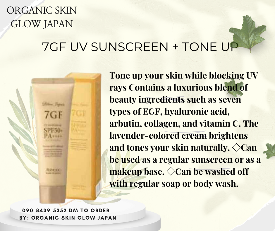 Tone up your skin while blocking UV rays Contains a luxurious blend of beauty ingredients such as seven types of EGF, hyaluronic acid, arbutin, collagen, and vitamin C. The lavender-colored cream brightens and tones your skin naturally. ◇Can be used as a regular sunscreen or as a makeup base. ◇Can be washed off with regular soap or body wash.