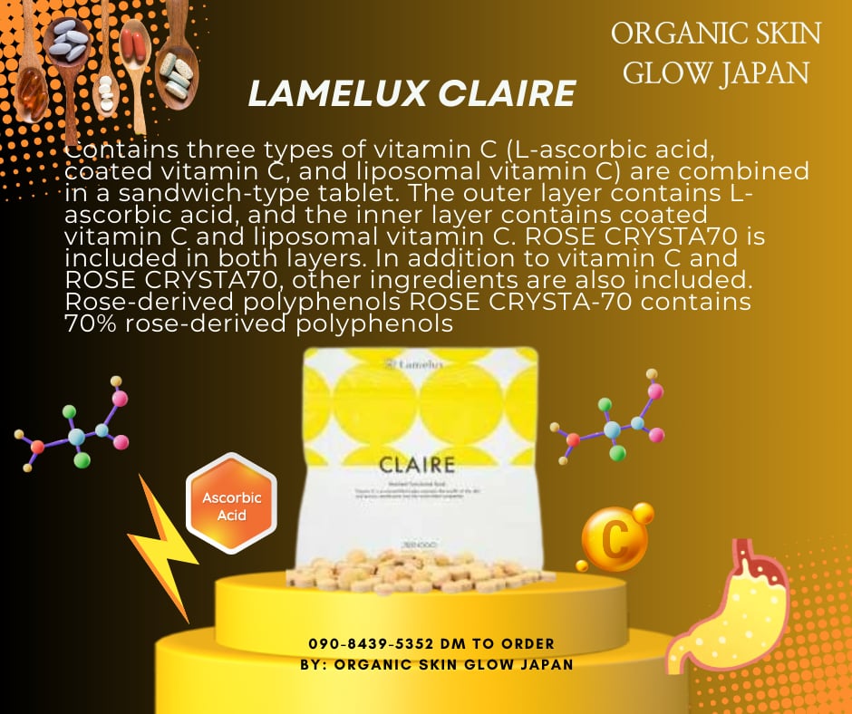 Contains three types of vitamin C (L-ascorbic acid, coated vitamin C, and liposomal vitamin C) are combined in a sandwich-type tablet. The outer layer contains L-ascorbic acid, and the inner layer contains coated vitamin C and liposomal vitamin C. ROSE CRYSTA70 is included in both layers. In addition to vitamin C and ROSE CRYSTA70, other ingredients are also included. Rose-derived polyphenols ROSE CRYSTA-70 contains 70% rose-derived polyphenols